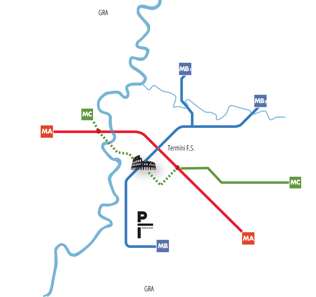 - Treni: Ostiense (20’), Termini (25’), Tiburtina (30’)