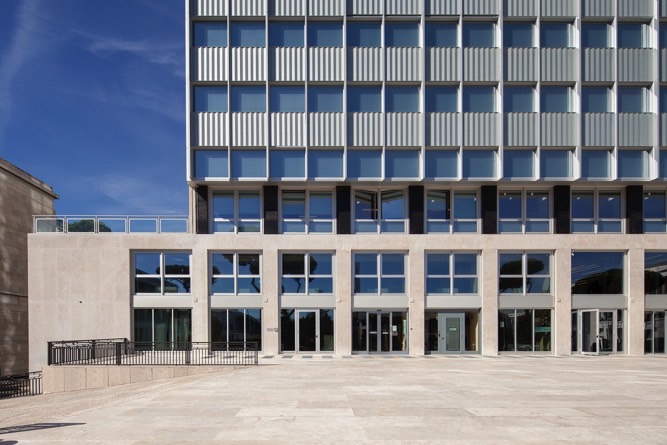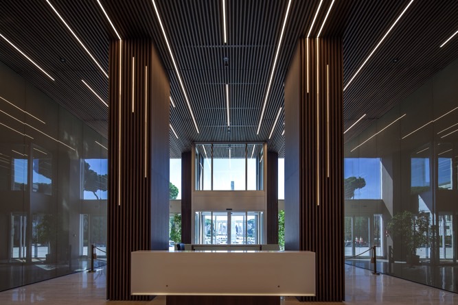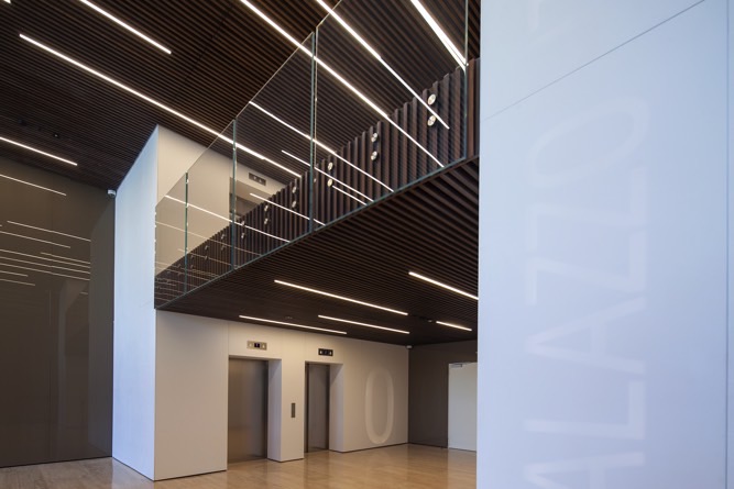 Il nuovo intervento ha recuperato infatti la gerarchia delle componenti del sistema di facciata, attraverso la completa sostituzione dell’involucro esterno, con un trplice obiettivo: rinnovare l’estetica dell’edificio, garantire un risparmio energetico e consentire un maggiore controllo della luminosità all’interno degli spazi.